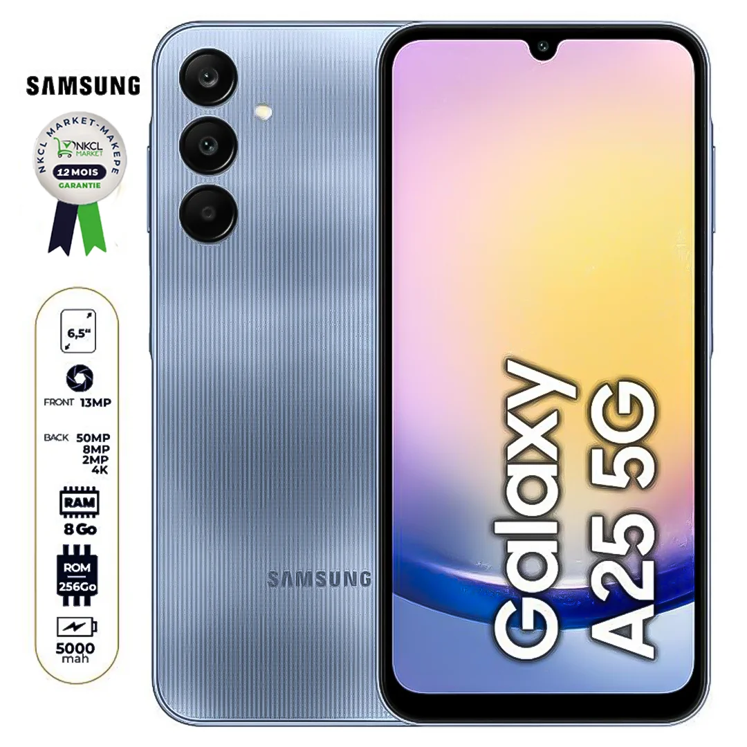 Le Samsung Galaxy A25 est un smartphone moderne et performant, conçu pour ceux qui veulent fluidité, grand écran et stockage confortable, tout en restant dans un budget raisonnable.